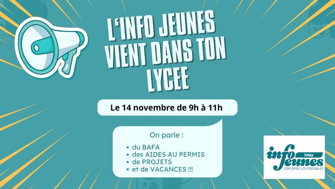 L'info jeunes sera sur l'établissement le vendredi 14 novembre