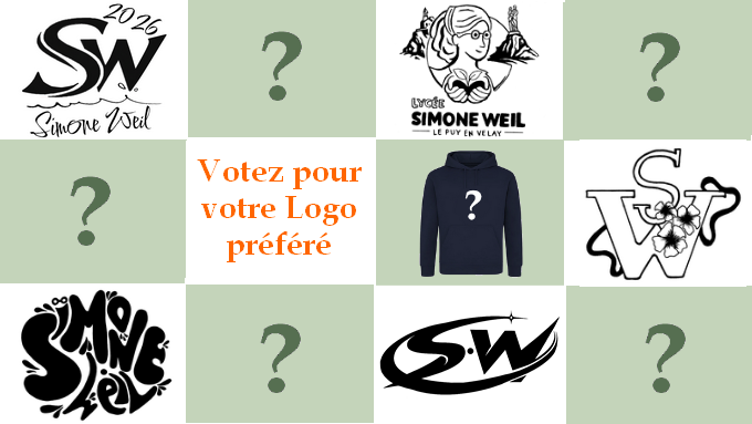 Acquéreurs potentiels, vous êtes invités à voter pour votre logo préféré, celui qui personnalisera le futur Sweat « Simone Weil » 2026. Une urne ainsi que des bulletins de vote sont à votre disposition au CDI jusqu’au Mercredi 04 février 2026.