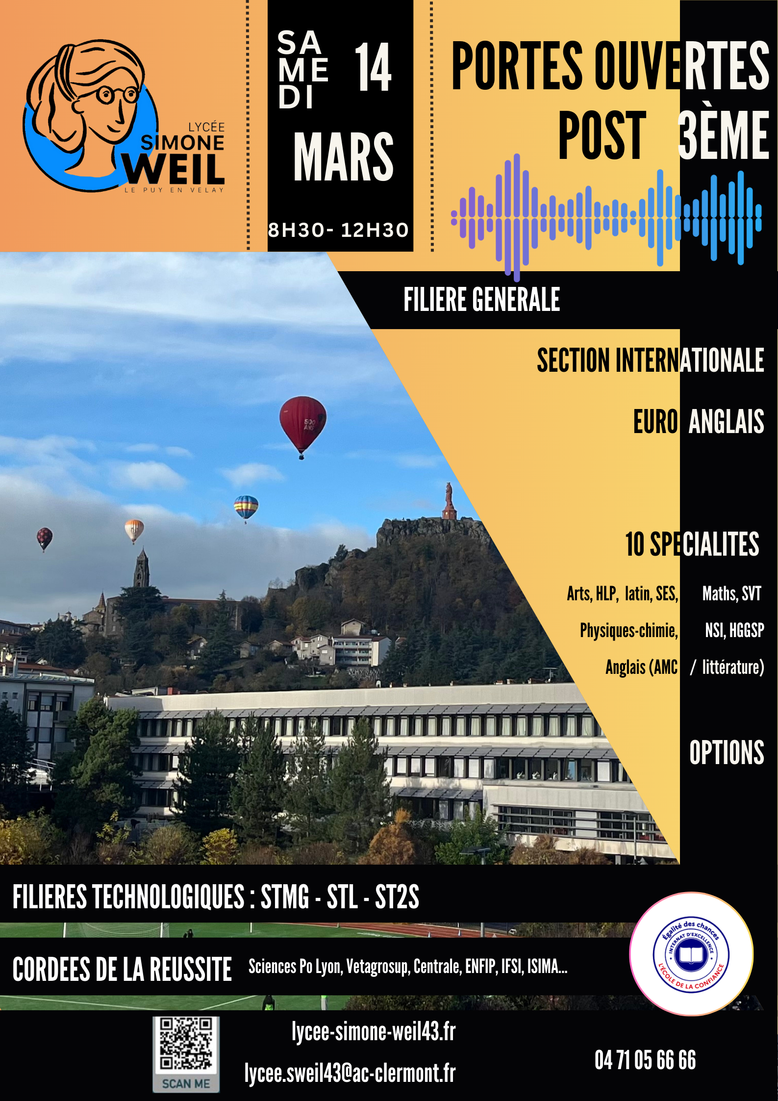 Le lycée ouvre ses portes le samedi 14 mars de 8h30 à 12h30 afin de vous présenter ses filières post 3ème.
