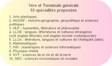 En Terminale possibilité de choisir 1 enseignement spécifique en plus des 2 spécialités |